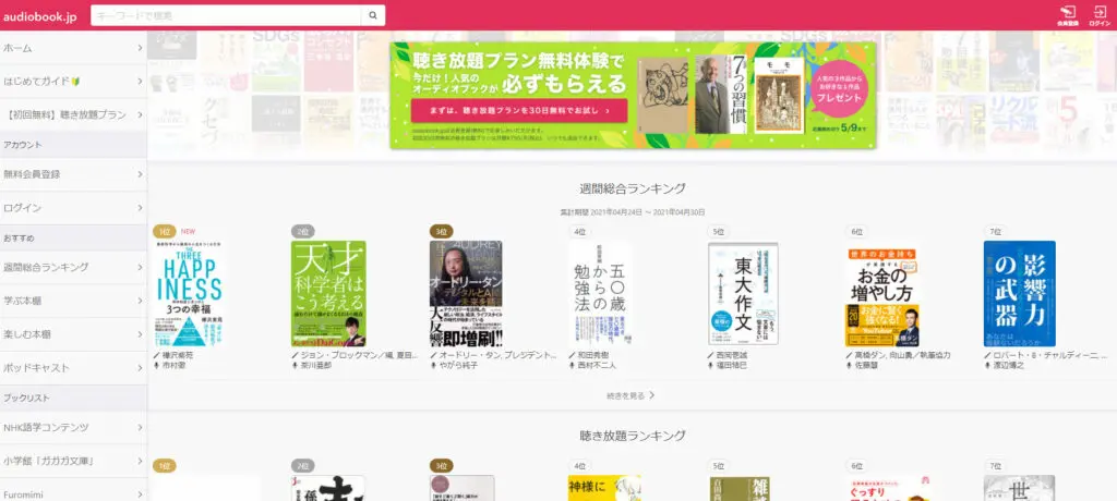 audiobook.jpは日本国内最大級のオーディオブックプラットフォームで、ビジネス書や実用書に特化しています。