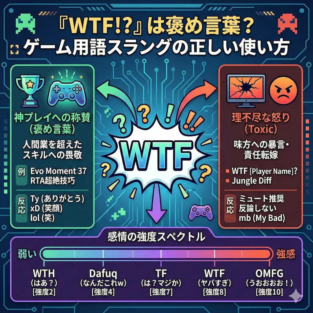 私は長年オンラインゲームの世界に身を置いてきましたが、チャット欄で飛び交う3文字のアルファベットに戸惑う初心者を数多く見てきました。「WTF」という言葉は、直訳すれば非常に汚い言葉ですが、ゲームの世界では必ずしも悪口ではありません。