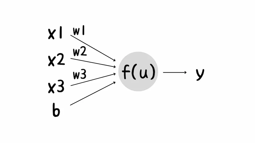 ニューラルネットワークの一般的な数式として「単純パーセプトロンの式」があります。