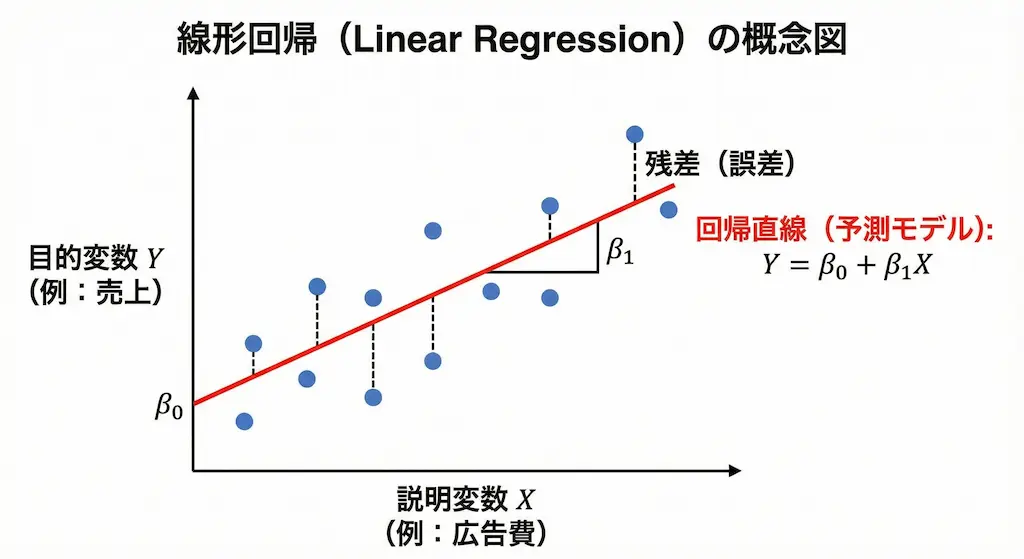 「広告費を10万円増やせば、売上は平均50万円増える」といった具体的な数値を算出できます。他にも、明日の気温予測や不動産価格の推定など、具体的な「量」を知りたい場面で私は必ずこの手法を検討します。