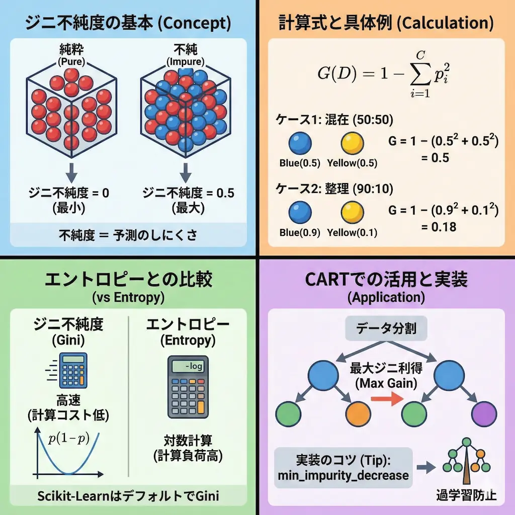 ジニ不純度ってなに?指標の意味と計算方法をわかりやすく解説!